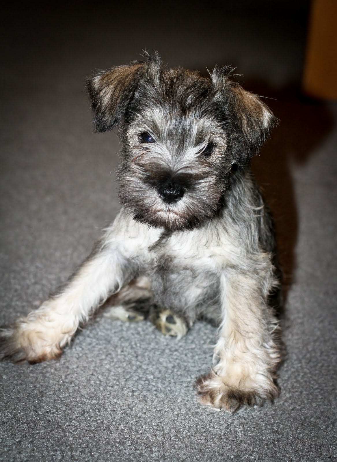 Meet Alice. We call her Ali. She is a miniature schnauzer puppy, 6 weeks old. A puppy was not in our future but a co-worker of mine had an ad placed to sell her, and her sister and I couldn't resist. That and the timing seemed to work nicely. She is a calm,relaxed (so far) dog, pretty much is carried around ALL THE TIME! She is already sporting a pink sweater and a pink rhinestone collar charm. I can tell this dog is going to be spoiled rotten. Emilee picked the name. It is actually a cute story. She googled doggie names, picked about 30 she liked. Wrote them all on a piece of paper, put them into a hat, drew three then had all of us vote. Even Sam the dog had a vote. Then....she took the top three names to school and had her entire class vote.